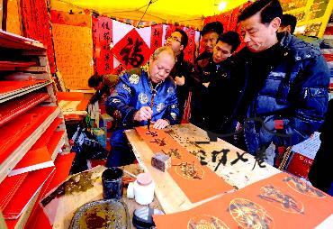 春节临近,福建市民争相购买春联、大红灯笼、兔年生肖卡通挂件等春节文化饰品,迎接新春佳节。