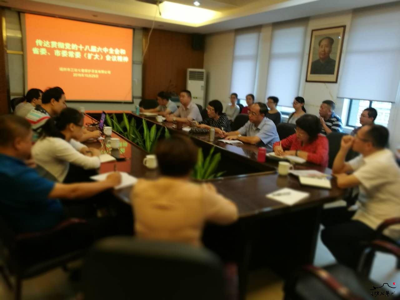 10月29日,三坊七巷保护开发有限公司党委书记、董事长谢谦华主持召开专题会议,传达党的十八届六中全会精神,研究公司贯彻落实意见。公司领导班子成员和各职能部门负责人参加了会议。本次会议应到人数31人,实到29人,请假2人。