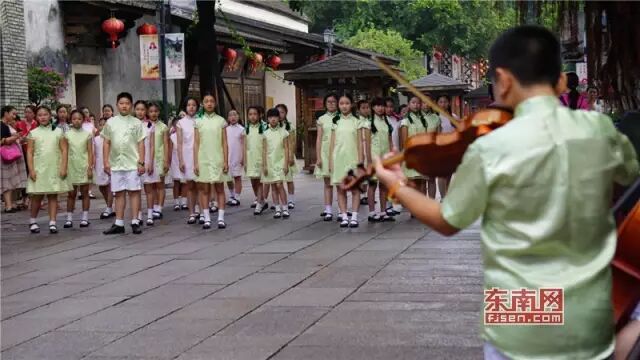 在第三十三个教师节来临之际,9月9日上午,福州市教育局小茉莉合唱团的师生们在三坊七巷以“快闪”方式献礼教师节。“小茉莉”们用最纯洁的声音演唱了《茉莉花》《每当我走过老师窗前》《想你的365天》等歌曲,向人民教师表达了最深切的敬意。