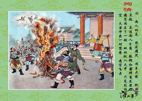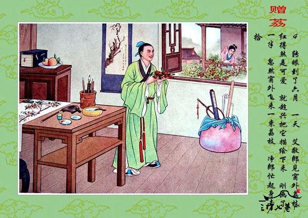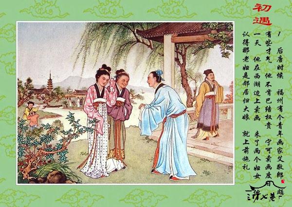 五代闽国时期,居住在吉庇巷南侧的一位书生名叫艾敬郎,端午节那天到西湖去游玩,与家住桂枝里河沿的姑娘冷霜蝉不期而遇,便生好感。过几天,艾书生在楼上读书作画,偶尔开窗,发现河对岸楼阁上站立的正是与之相遇的姑娘。两家窗户相对,仅隔一条安泰河。大约冷姑娘因看上了艾书生,便拿一串荔枝投过去;艾书生知书识礼,就回报两颗绛桃。水果传情,撞击起爱情的火花。艾家遣媒求亲,冷家很快答应。就在他俩成亲之日,遇上闽王王鏻选美,冷霜蝉不幸被强选入宫。艾敬郞闻讯,肝肠欲裂。为了爱情,他冒死闯宫。一对情人,先是向闽王说理哀求。岂知王鏻见色忘义,非要冷霜蝉不可。艾冷二人不惧威胁,不畏强暴,终于双双被活活烧死,化为一对鸳鸯。这个故事情节感人,与“梁祝哀史”异曲同工。20世纪20年代曾被搬上闽剧舞台,取名《火里鸳鸯》;50年代又经改编为《荔枝换绛桃》,参加华东地区首届戏剧观摩会演,获得大奖。榕城传颂至今。