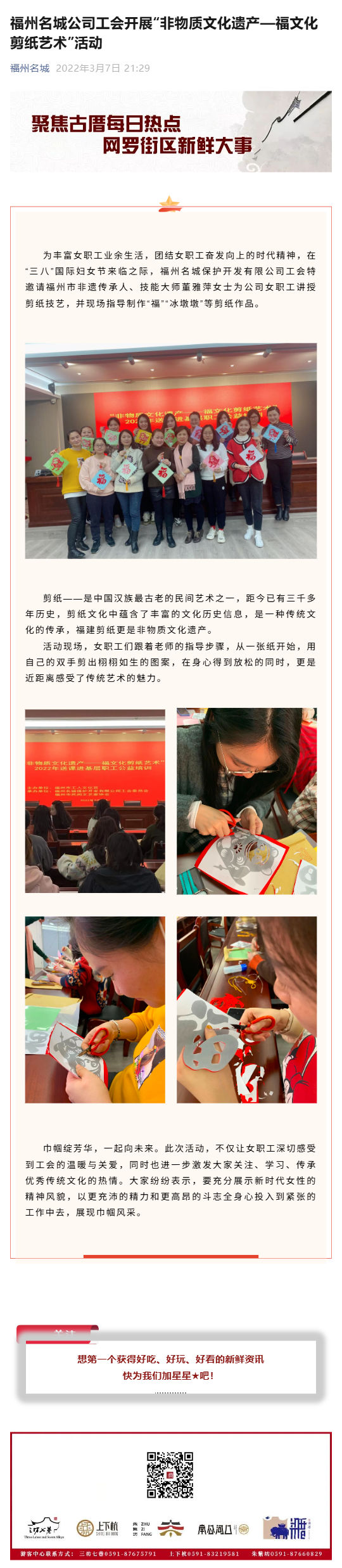福州名城公司工会开展“非物质文化遗产—福文化剪纸艺术”活动