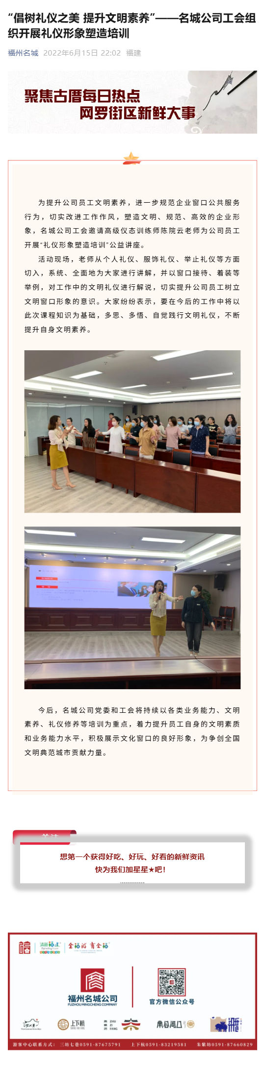 “倡树礼仪之美 提升文明素养”——名城公司工会组织开展礼仪形象塑造培训