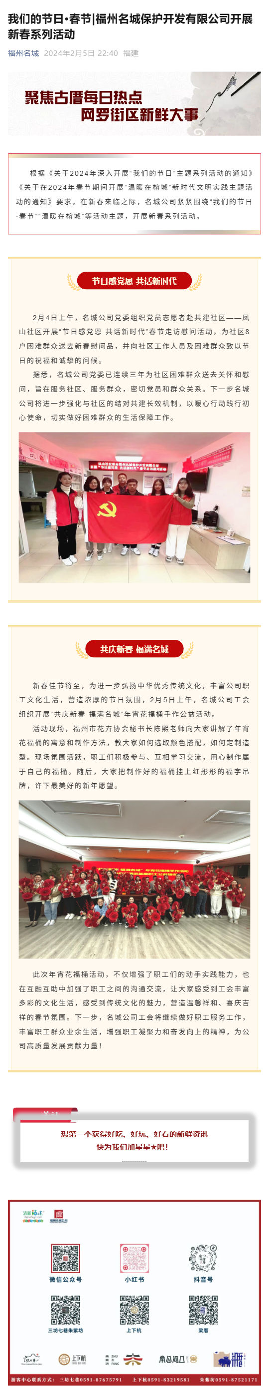 我们的节日·春节|福州名城保护开发有限公司开展新春系列活动