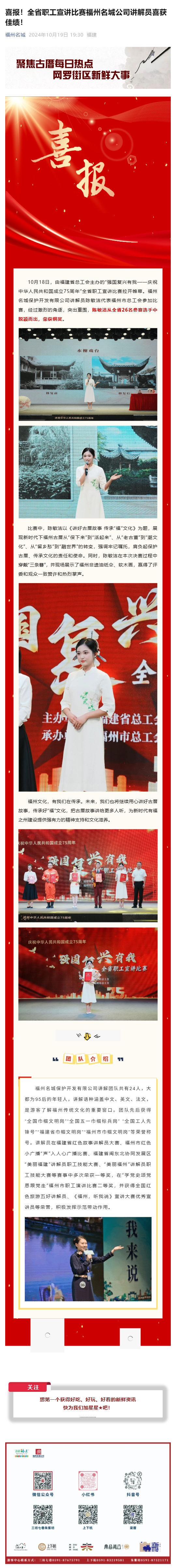 全省职工宣讲比赛福州名城公司讲解员喜获佳绩!