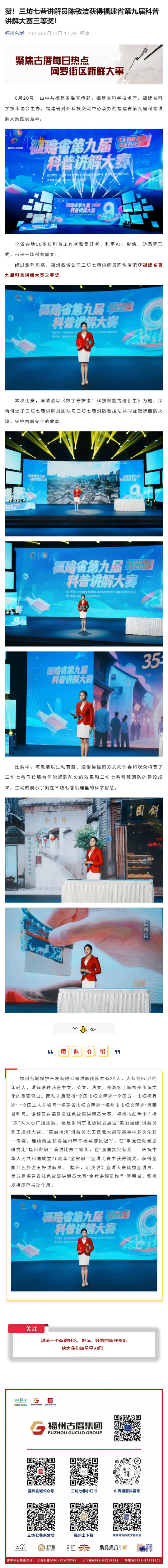 三坊七巷讲解员陈敏洁获得福建省第九届科普讲解大赛三等奖!