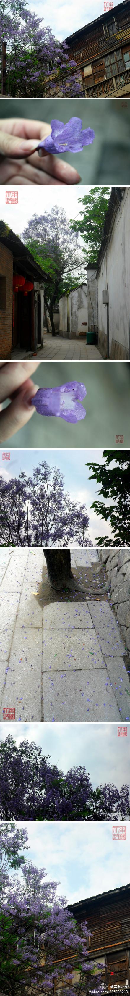 现在的福州,蓝花楹所剩不多, 我所知道的,安泰河边,虎节路,三坊七巷都有几棵。而在仓山,从麦园路到对湖,一整条路上都是蓝花楹,坐着公交经过,连空气都温馨起来!