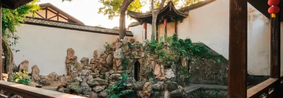推开紧闭的小门,两侧围墙高耸,曲径通幽。当我们穿过那道古朴的拱形坊门,刹那间,眼前豁然开朗,一方别样的天地铺展在眼前。再绕过照壁,一栋雅致清幽、富丽堂皇的灰色砖房立在庭院尽头。环顾四周,院中植物繁盛,高大的芒果、龙眼、玉兰、棕榈、石榴、桑树等乔木错落有致,搭配盆景、花卉,营造出和谐舒适的私家园林环境。