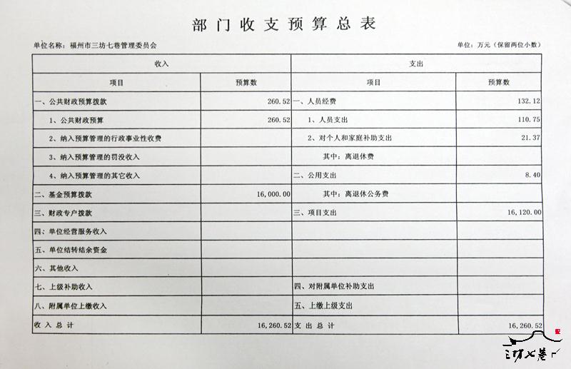 福州市三坊七巷管理委员会2013年部门收支预算总表