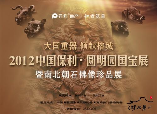 2012年9月15日-9月23日,保利地产将携圆明园兽首及南北朝佛像国宝来到福州,在福州三坊七巷宗陶斋展馆展示国宝的魅力!届时,即将为榕城呈献一次史上规格最高的国宝盛宴。国宝展期间需要广大社会群众共同参与,为配合这一活动完满举办,现向各大高校招募20名大学生志愿者,亲历整个国宝展活动。