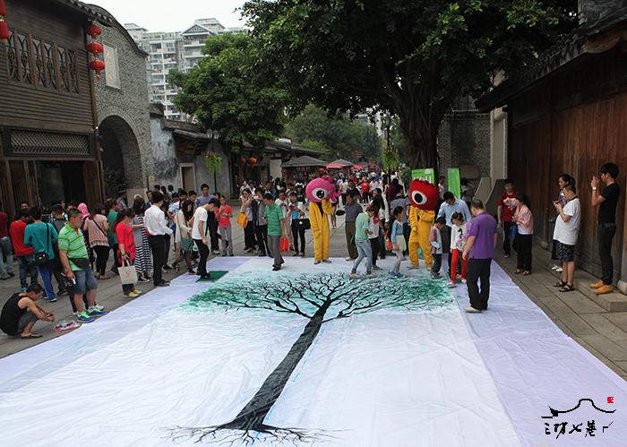 12日,来来往往的市民被南后街上巨大树干的画布所吸引,不时有市民在现场工作人员的指引下,脚踩绿色染料然后从画布上一段走向另一端,渐渐“枯树”逢春变绿,一棵绿色“大树”雏形初显。许多家长也带着自己的孩子为大树添上了新“叶子”,还有许孩子也调皮地在画布上“作起了画”,期间更有一小伙背着自己的女朋友从“大树”中间穿行而过,“大树”也渐渐枝繁叶茂,绿色也越来越浓郁。据现场工作人员介绍,此次创意活动主要目的是呼吁市民关注环境污染问题,号召市民多走一步路,以低碳、绿色、环保出行,减少私家车尾气排放,从一件件小事做起,践行公益,让孩子们能够看到更美的蓝天。