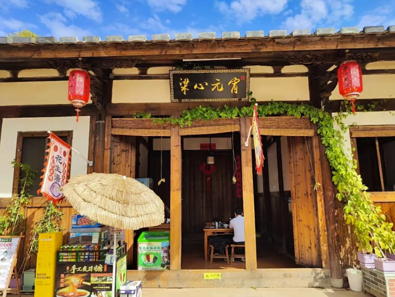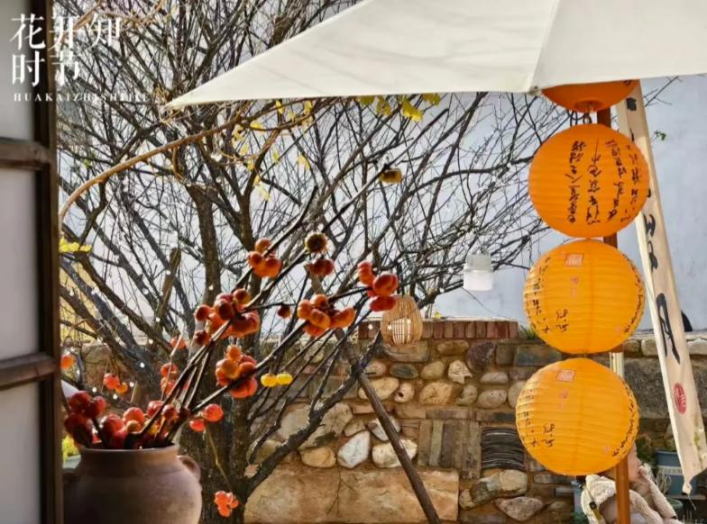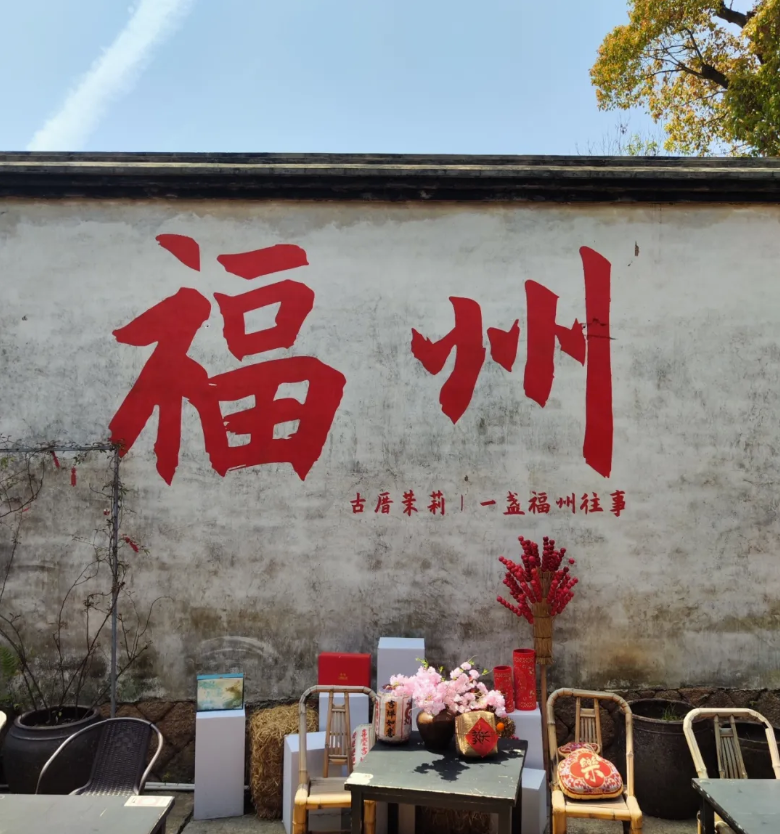 流苏花一旁的大众茶馆