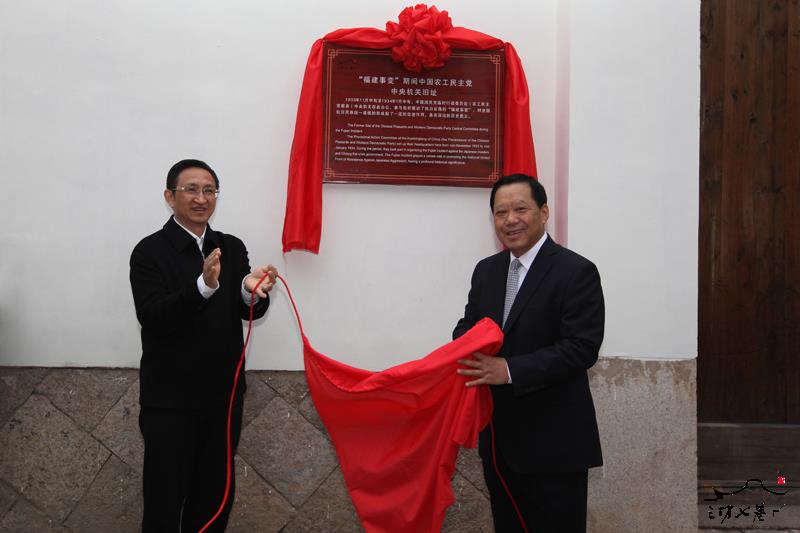 11日,全国政协副主席、农工党中央常务副主席刘晓峰来到于山“福建事变”展览室“补山精舍”、三坊七巷等地参观,并来到三坊七巷黄巷28号,为“‘福建事变’期间中国农工民主党中央机关旧址”揭牌。