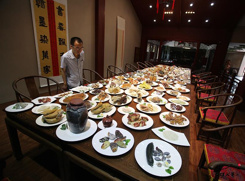 据百宴轩负责人孙兆勇介绍,他自幼获得祖父孙厚发(原罗源县雕刻厂厂长)、福建省工艺大师叶钗论 、叔叔孙传祥指导,经过十多年的收集、创作,利用几十种普通的寿山石、月尾石、善伯冻等品种石,现已创作出130道菜品,希望以三坊七巷作为平台,进一步与海峡两岸文化做交流,与广大市民游客共赏寿山石盛宴。