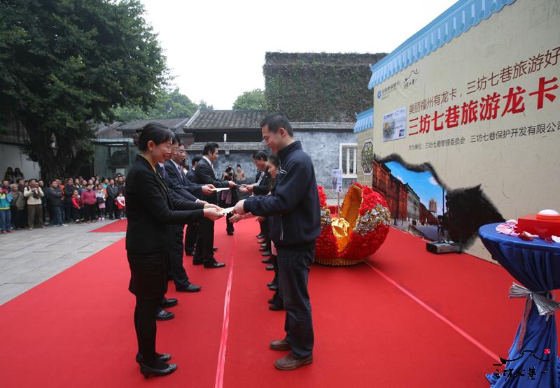 12月8日,三坊七巷管理委员会与中国建设银行福建省分行共同发行三坊七巷旅游龙卡。这是福州市首张以旅游文化景区命名的银行卡。三坊七巷是福州市著名旅游文化景区,荣获“中国十大历史文化名街”、“国家4A级旅游景区”、和“中国首座生态(社区)博物馆”等多项荣誉称号,是中国都市仅存的一块“里坊制度活化石”。此次中国建设银行福建省分行与三坊七巷管委会共同推广发行“三坊七巷旅游龙卡”,将福州传统旅游文化与建行金融服务文化相融合,开创了旅游文化与金融产品相结合的首例。三坊七巷旅游龙卡卡面精美,体现了三坊七巷古老文化名居,艺术构图极具收藏意义。该卡为银联龙卡通IC卡,具有现金存取、支付结算、购物消费、证券交易、外汇买卖、账户管理、理财签约服务、电子现金快速支付等龙卡借记卡所有的金融功能。同时,三坊七巷龙卡还加入了中国旅游卡的各项功能,为持卡人提供景区、酒店、保险、购物等旅游相关的全方位特惠服务,享有全国百家景点门票刷卡购票5-8折优惠折扣;同时还精选特惠酒店,买两晚,一晚免费,送完为止。全国千家特惠商户,吃喝玩乐享各类折扣。2014年3月底前,在福州各建行网点申办三坊七巷旅游龙卡即可赠送三坊七巷精美卡套,先到先得。