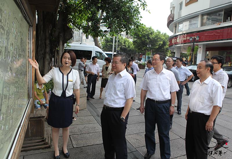 7月22日,国务院法制办副主任、党组成员甘藏春一行在省人大常会副主任黄琪玉、市人大常委会党组书记、主任周振华的陪同下到三坊七巷参观考察林觉民、冰心故居、二梅书屋等地。三坊七巷保护开发有限公司总经理谢谦华陪同考察。
