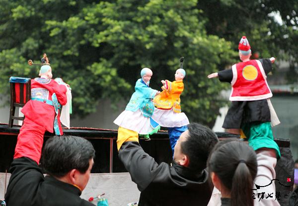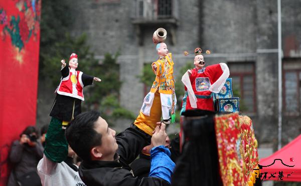15日上午,三坊七巷光禄呤台木偶剧团正在为游客表演传统的木偶戏。艺人们用手指掌直接操纵偶像进行戏剧性的表演,使木偶们活灵活现,栩栩如生,体现人戏的唱、念、做、打,以及喜、怒、哀、乐的感情,表演传统、经典的选段为主,展现木偶戏的绝技,保护和传承福建民间传统文化。