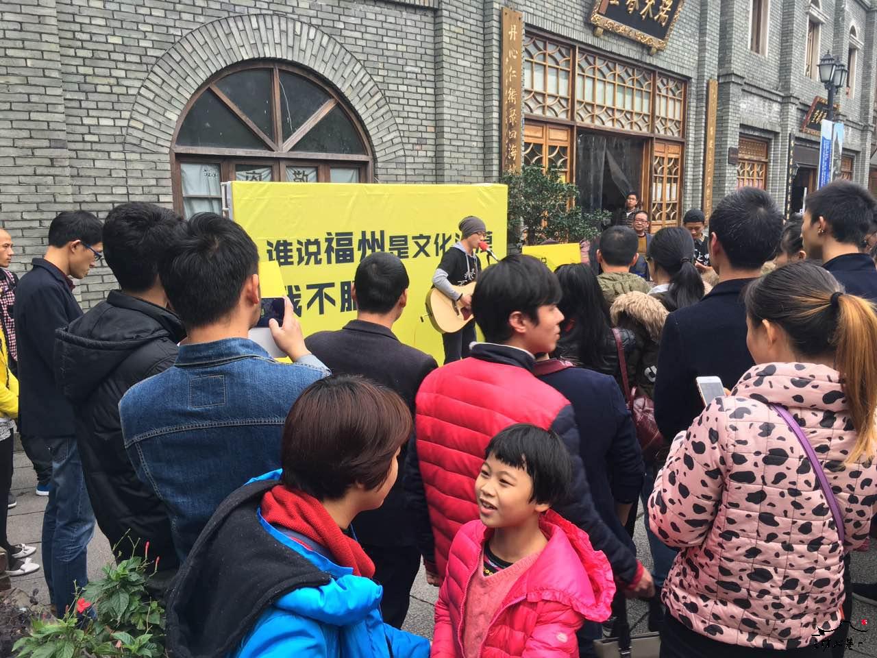 12月13日一场名为“谁说福州是文化沙漠,我不服!”的福州城市绿洲计划活动在三坊七巷景区火热进行。本次活动以随性的街头吉他弹唱、街舞、行为艺术、街头乐器演奏等表演形式,贯穿整条南后街,旨在通过此演出形式表达现代年轻人对艺术对文化的热情和活动张力,让更多有理想、有情怀的青年人汇聚在一起,让更多的人关注福州文化发展现状,为理想贡献力量。