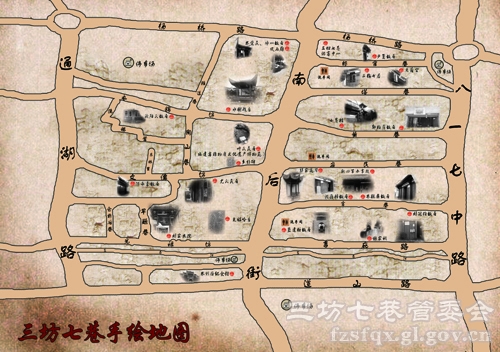 三坊七巷管委会将发售印刷版的“手绘地图”,地图将做成仿古麻布或牛仔布方巾的形式。正面是三坊七巷“手绘地图”,将标明所有景点,洗手间,服务中心的位置;背面是福州市区“手绘地图”,将标明主要景点、汽车站、火车站以及三坊七巷的位置。三坊七巷管委会将通过这份手绘地图,提升旅游服务质量,并陪伴他们整个三坊七巷的旅程。