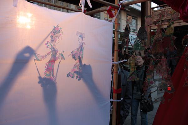 “这都是用驴皮、牛皮制作而成的!”皮影戏木桌前,来自东北的刘阿姨正在向小朋友们演示如何使用支架表演皮影戏,小朋友们都被出现在幕布上栩栩如生的古装打扮人物和活灵活现的小动物惊呆了。在两米远的民间乐器摊位前,刘阿姨的丈夫——民间艺人毛师傅正在用自己制作的陶笛吹奏一曲《喜洋洋》,摊子上摆满了他自己制作的葫芦丝、陶埙、京胡、板胡、二胡等乐器,摊位吸引了很多游客购买,甚至有一位刘小姐打算拜他为师。