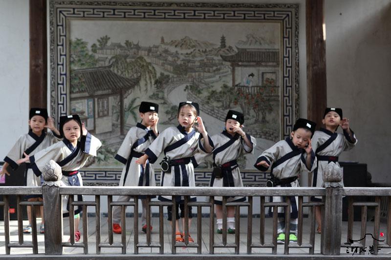 下午,三坊七巷水榭戏台上演一场精彩的国学表演,来自福州童学馆的老师和小朋友们向在场的游客展示了敬师礼、形体礼等礼仪,诵读《弟子规》,童学拳等精彩的节目。