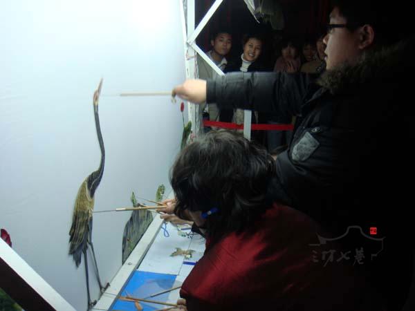 昨晚,三坊七巷风雨廊前掌声阵阵,来自辽宁的民间艺人为游客展示了许多经典皮影戏段子。《鹤与龟》中小动物惟妙惟肖的动作、《雀之灵》中美丽女子的婀娜身姿,驻足观看的观众们被演员们精湛的演技所折服。