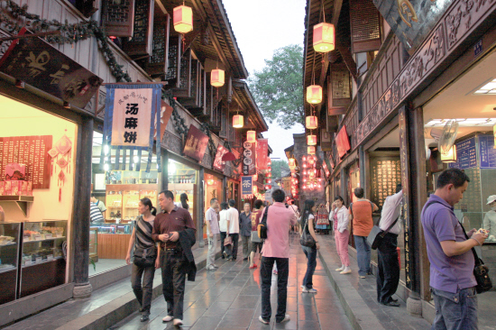 在锦里古街的酒吧街,又是截然不同的异国氛围。“锦里”之名起源于这里曾是四川特有蜀锦的大本营,因此如果幸运的话,你还可以亲眼目睹蜀锦蜀绣的现场制作。在锦里古街,你可以感觉到午后的阳光是慵懒的,人的脚步也开始放缓下来,静静享受难得的懒散。众所周知,成都人都非常懂得享受生活,平常最爱去的就是小茶馆,而在锦里古街当然也少不了小茶馆,在小茶馆选择一处临水的窗边坐着,一壶茶,一本书,便可以让你一天的时间过得既休闲又充实。