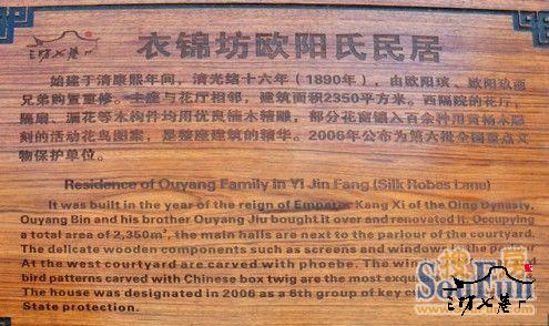 欧阳氏民居是全国重点文物保护单位,为衣锦坊内迄今保存最好的名居古屋,也是目前三坊七巷中唯一没有外姓居住的故居。欧阳氏民居始建于1750年左右(清乾隆年间),距今已有250年历史,精妙无比,堪称古建筑中上乘的艺术珍品。其中,坐落在首进院落西侧的欧阳花厅堪称整座欧阳氏宅院的精华。