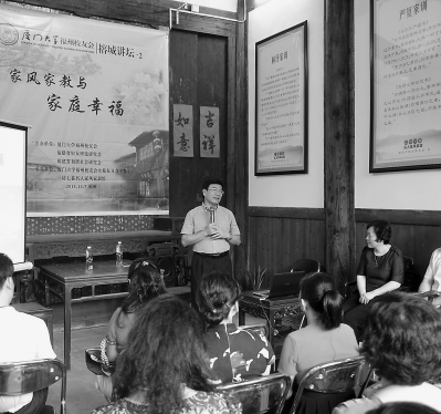 家风家教不仅是价值、伦理层面的宏观问题,更与我们的日常生活、行为举止息息相关。7日下午,在福州三坊七巷名人家风家训馆,近百名游客齐聚一堂,听取了“家风家教与家庭幸福”的讲座。