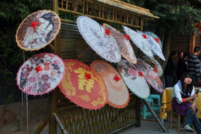 三坊七巷内沿街摆放各种图案的纸伞,夺人眼球,穿着旗袍的古典美女配上一把精美纸伞,绝对是个艺术品。