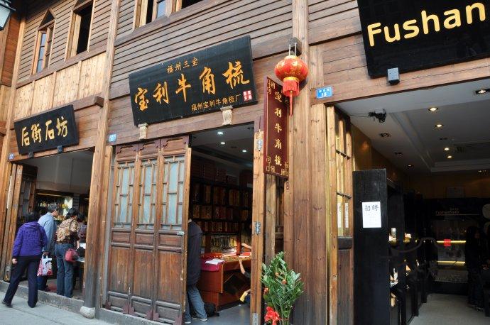 在三坊七巷内,寿山石的店铺有两三家。寿山石在福州家喻户晓,被当作上品。