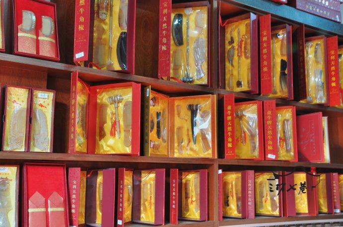 牛角梳,以牛角为原料,采用传统的工艺手工制作而成,历史悠久。牛角本身是一种中药,每天用牛角梳梳头,能刺激头皮和脑神经,促进血液循环,起良好的保健作用。牛角梳也是当时福州三宝之一。