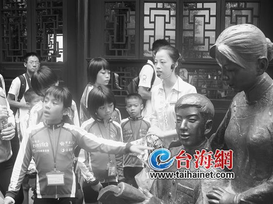 “一座宅院,两位名人”,孩子们首先来到林觉民、冰心的故居。对于大陆小朋友再熟悉不过的这两位名人,包括张佩霞在内的台湾小朋友,他们虽然“陌生”,但穿行故居其中,听着讲解,对“泪珠和笔墨齐下”的《与妻书》,优美动人的《小桔灯》,也慢慢地“有点感觉”了。