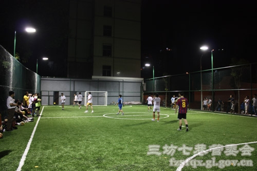 据悉,为了给市区居民提供便捷、良好的健身锻炼场所,三坊七巷管委会给予了大力支持,不仅为这个足球场的建设提供了场地,还邀请了福州市的几支业余球队参加了今晚的试场赛。