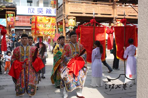 上午8时30分,朝元幡和香盘往巷口迎接宗师高道登坛