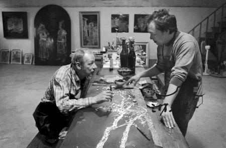 布莱斯与郑频交流漆画技艺