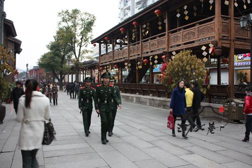 近日,武警小分队进驻南后街,定期或不定期对南后街进行巡查,处置各种突发事件。武警进驻南后街不仅加强了景区的治安,又能协助维护秩序,帮助群众排忧解难、确保游客的安全。