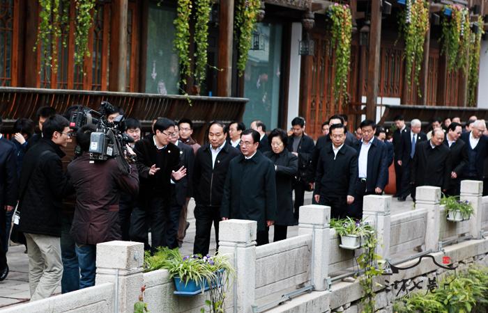 在中国历史文化名街三坊七巷,贺国强沿途察看了三坊七巷保护修复情况,对我市着力保护修复历史建筑,致力建设文化强市的做法表示肯定,希望福州市在城市建设发展中,更加注重历史文化的传承、保护和挖掘,积极发展文化产业和旅游业,提升城市文化品位,增强城市文化软实力,努力让文化遗产保护成果惠及广大人民群众。