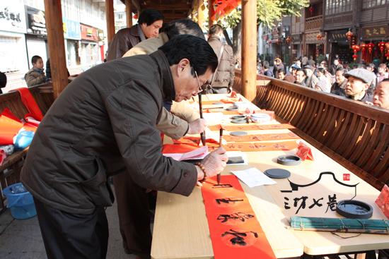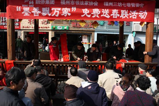 2011年1月16日上午,由福州市“墨香飘万家活动”组委会、福州市三坊七巷管委会主办的“文化进社区、墨香飘万家”迎新春联活动在南后街风雨廊举行。