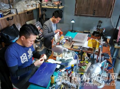 福州新闻网(微博)3月31日讯(记者 邱陵 实习生 颜学辉)在福州三坊七巷街区,有一间门面不大却引人注目的手工皮具作坊,数条长木拼成店门,古朴盎然。伴着偶尔响起的敲打声,昏黄的台灯下,总有两个不知疲倦的年轻男生埋头忙活,空气里弥漫着皮革味道,时光彷佛也在这样的氛围下,凝滞不前。