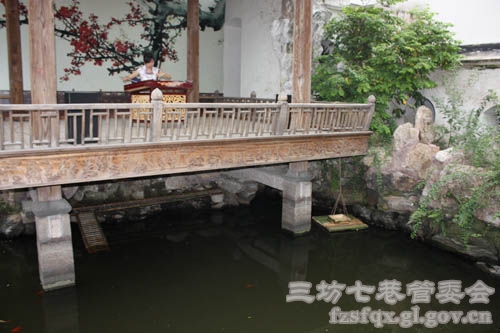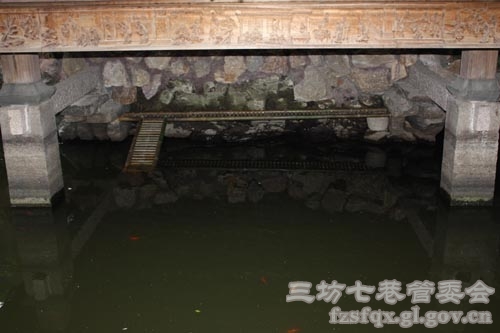 2010年7月15日,水榭戏台正在为鸳鸯搭建新窝。这个新窝由梯子和方形竹排两个部分组成。梯子放置于戏台下架在柱子之间,由一个小梯子连接到池中,方便上下,用于给鸳鸯休息。方形小竹排悬挂于戏台下右侧,竹排上放一个小盒,放置饲料,用来喂养鸳鸯。据三坊七巷管委会有关人士介绍,搭这个窝主要是为了保护鸳鸯,为其创造更好的生活环境。