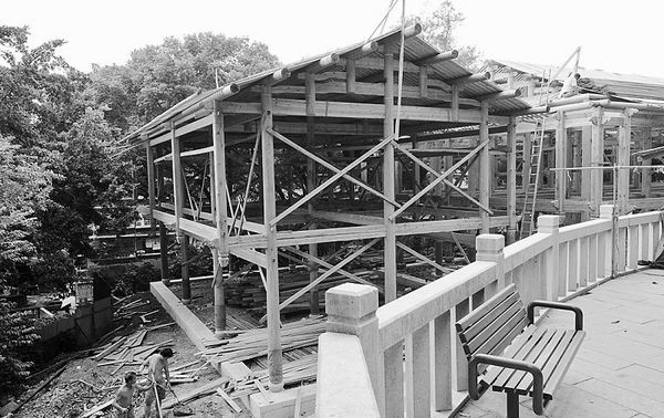 近日许多市民发现乌山风景区北面正在兴建一处全木结构房屋,大家纷纷猜测这是什么景观。昨日下午,记者前往现场一探究竟,得知这里正在重建勉斋书院。