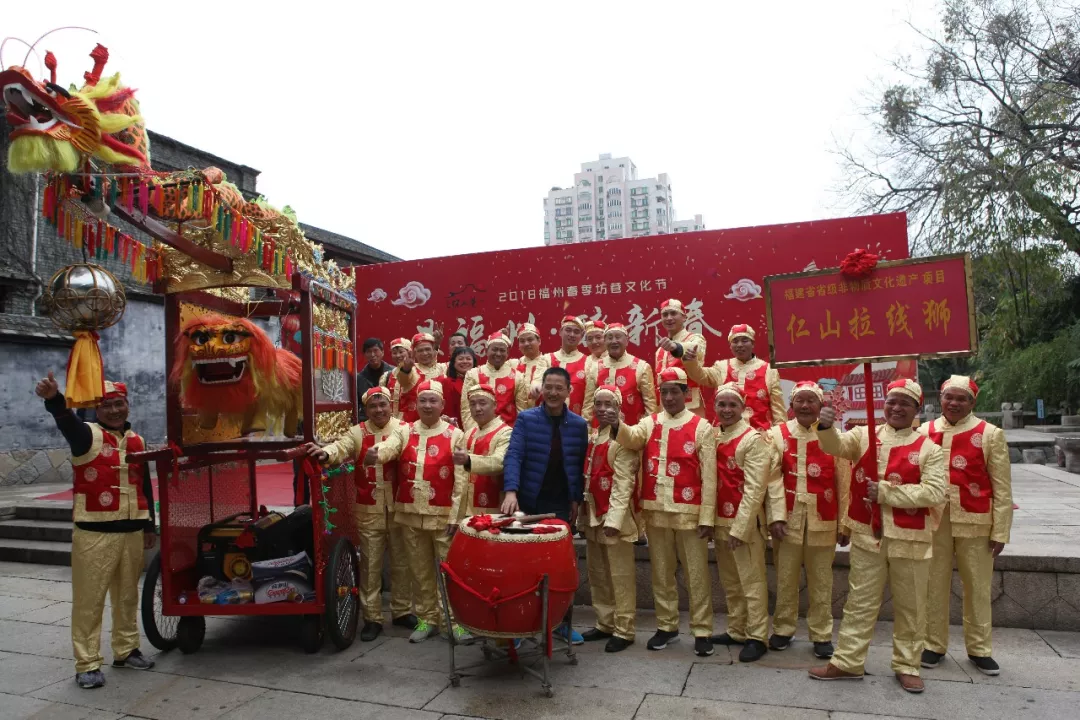 今日上午,“最福州 醉新春”——2018福州春季坊巷文化节之福州十邑民俗踩街活动连江县专场在三坊七巷举行。在光禄吟台和南后街上,一组独特的舞龙舞狮表演,吸引了众多市民,这就是由连江县文体局带来的:仁山拉线狮。