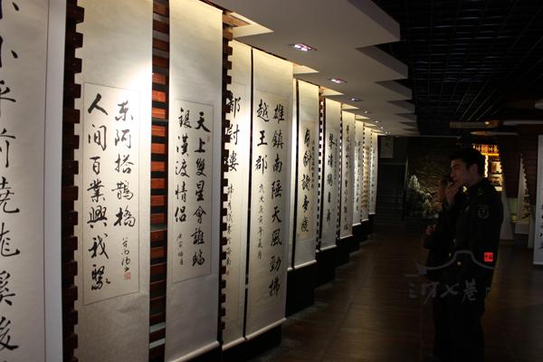 活动现场,百副由全国各地书法家书写的优秀楹联作品,吸引了众多观众的眼球。据了解,本次展示活动收到全国十多家楹联单位发来的贺联。10日读者可继续前往观看。