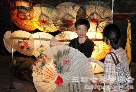 每天傍晚,严磊和陈莺明两个福州男孩,都要带着重100多公斤的两个大箱子,坐三个小时的公交,从马尾到南后街卖油纸伞。他们支开摊子,装好射灯,灯光打在纸伞上,很是显眼,可购买油纸伞的人却寥寥无几。“看的多,买的少。”严磊说,很多老福州看到纸伞,都感觉很亲切,可一问价格就不想买了。最好的时候,也只卖10把,大都是外国游客购买的。