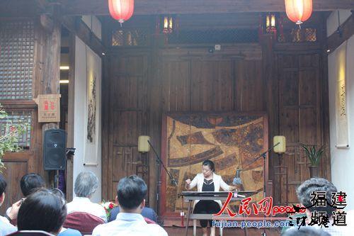 人民网福州10月13日电(实习记者 刘亚)13日下午,中国古琴界唯一女博士、中国音乐学院古琴专业教师黄楣,在福州三坊七巷的随安会馆举办古琴专场音乐会。黄楣女士现场演绎了古琴名曲《梅花三弄》、《酒狂》、《高山流水》,并且一边抚琴一边演唱《关山月》,古老琴声的飘逸、空寂,黄楣女士声音的婉转柔和,深深感染了现场的听众,大家沉浸其中,无言而出,只能报以由衷的掌声。