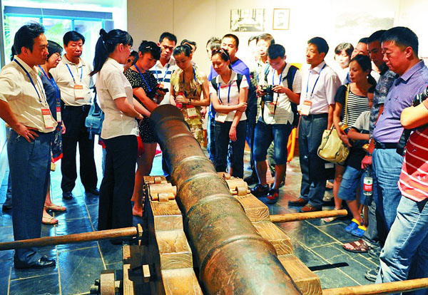 参观者细心听讲,认真拍摄。石家庄广播电视台的摄像记者张建东拍摄完林则徐的文字作品、禁烟标志性文物等,说:“林则徐为人正直、为官清廉,他的政绩和人品让人钦佩。以前对林则徐的了解,是从课本上和影视文学作品中得来的,这次通过看实物和生平介绍,对林则徐的了解更全面了。我回去后,要发一个外宣会议的片子,将福州的古街和其他景点展示出来。”
