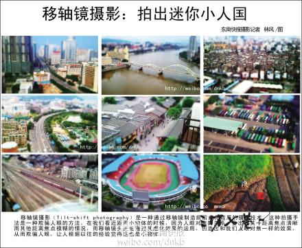 还记得我们小时候用积木搭建起来的世界吗?这些照片里所拍摄的不是微缩玩具,而是城市实景图哦!福厦铁路上高速行驶的列车、新店镇菜园里劳作的农民伯伯、汽车北站的客车在移轴镜头下变得惟妙惟肖,壮观的城市建筑变成了微缩的玩具模型,给人以“人造都市”的感觉!