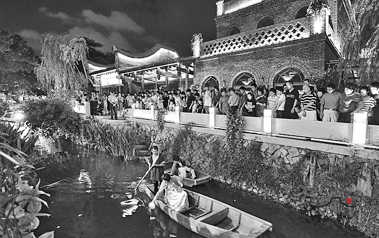 据三坊七巷管委会文宣部薜主任介绍,从2009年春节南后街开街起,管委会就在节假日推出民俗文化活动。但那时故居没修好,一些好的业态未引进,人气没上来,没有大经费,活动力度不大,节假日活动影响不大。评上中国十大历史文化名街以来,为了迎合百姓口味,管委会摸索着做传统民俗的、非遗文化传承活动。如去年“五一”搞抛绣球、民俗婚礼等活动,就很热闹。另外,在水榭戏台固定推出闽剧、伬唱、京剧票友等演出。今年起节庆活动不再囿于传统演绎方式,征集、挖掘现代新元素。传统七夕是现在年轻人偏爱的情人节,七夕夜结合本土文化,在安泰河泛舟,汉服女抛茉莉花送祝福,满足了老年人怀旧,年轻人新奇的需求。以前大多是老一辈来这怀旧,现在年轻人、老外很多上这来。明年元旦管委会将推出更时尚、动感的东西,如花样自行车、机器人表演。与春节民俗活动,如大型踩街活动区分开来。