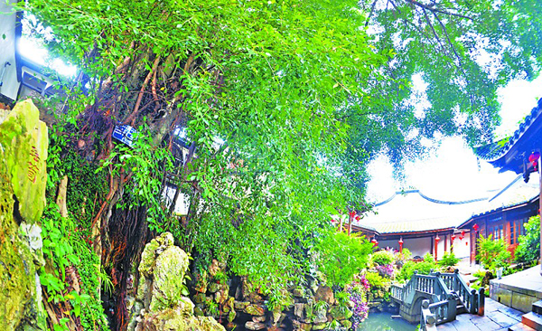 三坊七巷及其周边更是名榕荟萃。宫巷林聪彝故居里的白榕,生长在亭台边,树冠庞大雄伟,下垂的气根飘拂如仙,好似饱经沧桑的慈祥老者,是榕城最具特色的榕树之一。