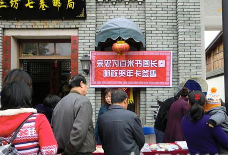 日前,余忠为历时3年创作的百米书画长卷《三坊七巷》有奖邮政贺年卡已经由福州市邮政局在全国公开发行。新年第一天,在福州三坊七巷,余忠为为百米书画长卷邮政贺年卡作现场签售活动。